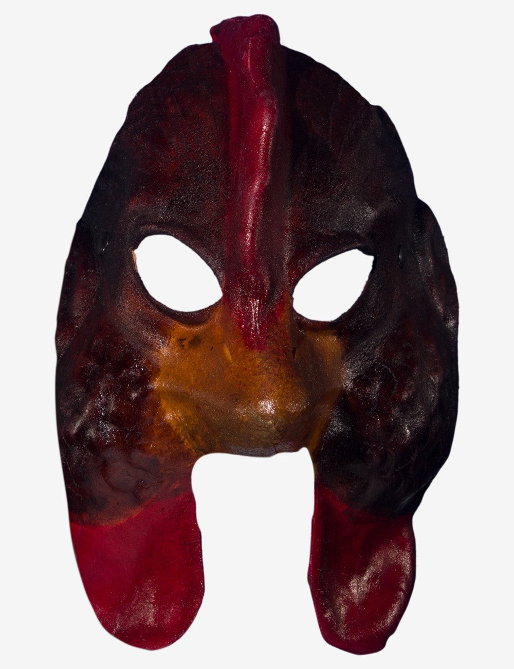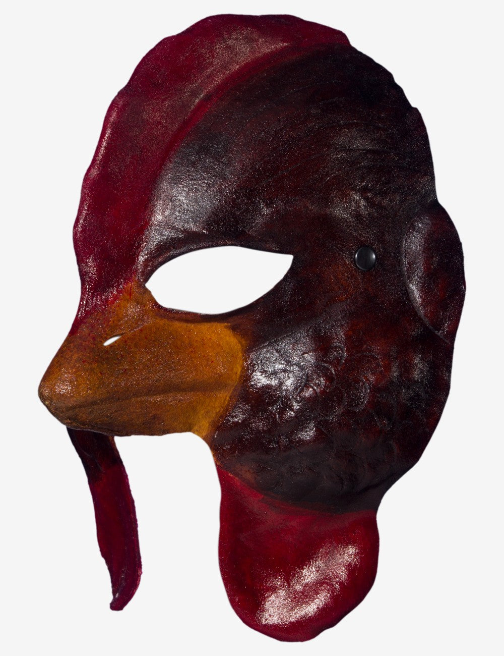 Huhn Handwerkliche Ledermaske mit Schnürsenkeln, damit man sie tragen kann, hergestellt in unseren Werkstätten in Italien. Von Hand bearbeitet und dekoriert, bewahrt sie eine Elastizität, die eine ausgezeichnete und lang anhaltende Tragbarkeit garantiert, die sich z.B. für Theater-, Schauspiel-, oder Tanzaufführungen eignet.