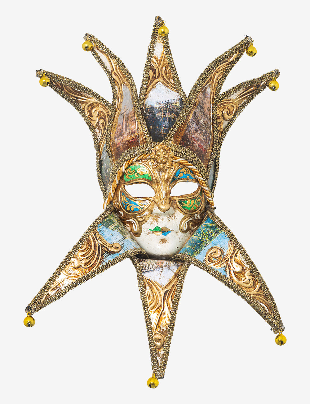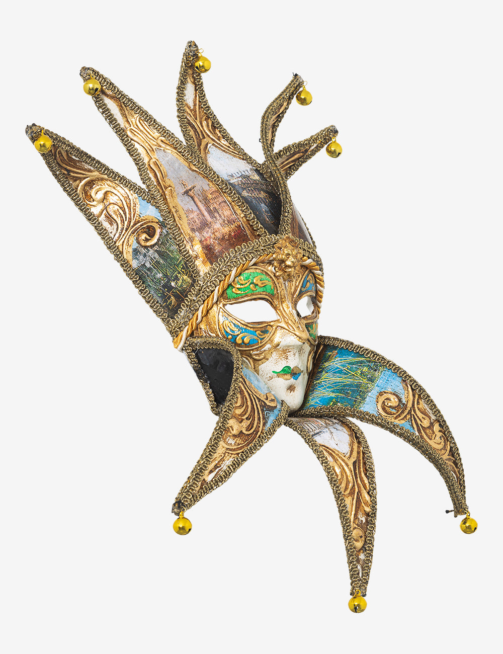 We offer a curated selection of Venetian masks, tailor-made historical costumes, hats, accessories, porcelain dolls, Murano glass, bronze and brass artistic foundry works, wooden forcole, and much more.