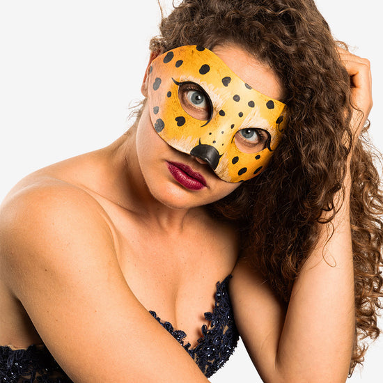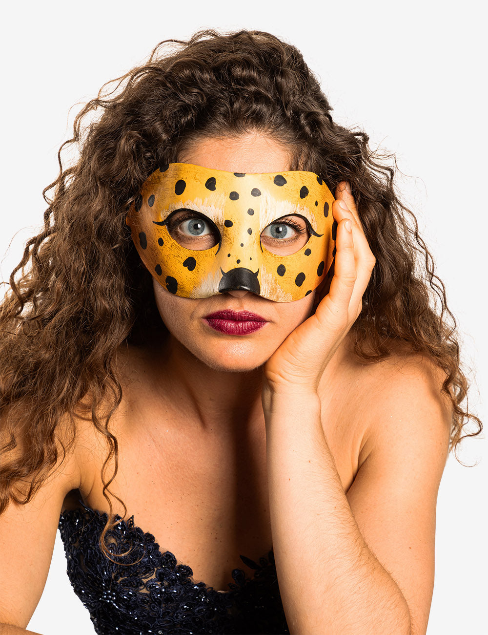 Leopard is an authentic venetian mask in papier mache. Handcrafted according to the original Venice carnival tradition. Manufactured in Venice by the famous venetian masters. Each item is provided with certificate of authenticity.