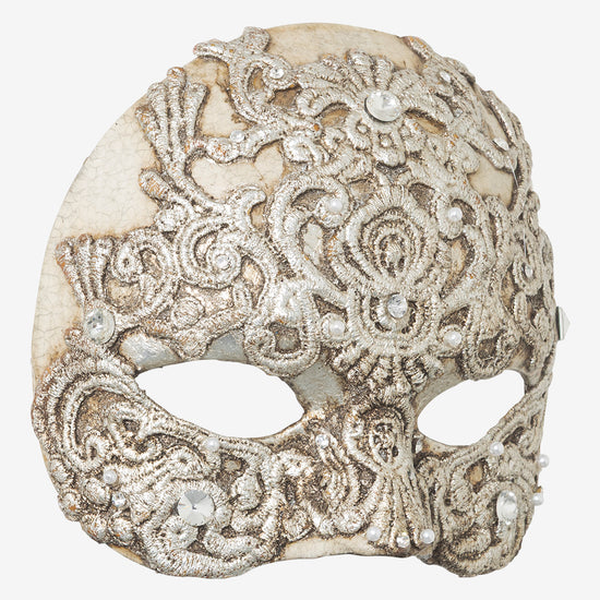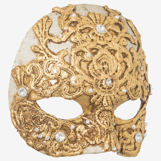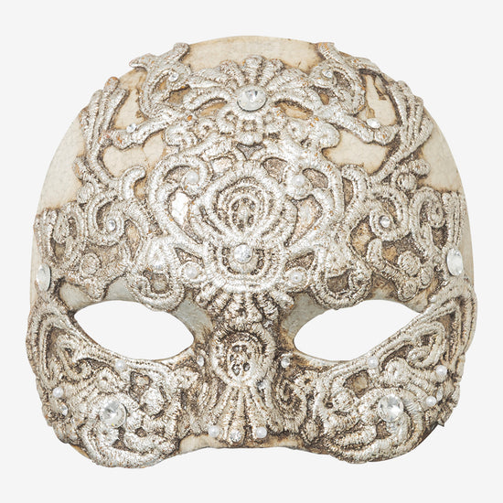 Macramé Half Mask: authentic venetian mask in papier mache.