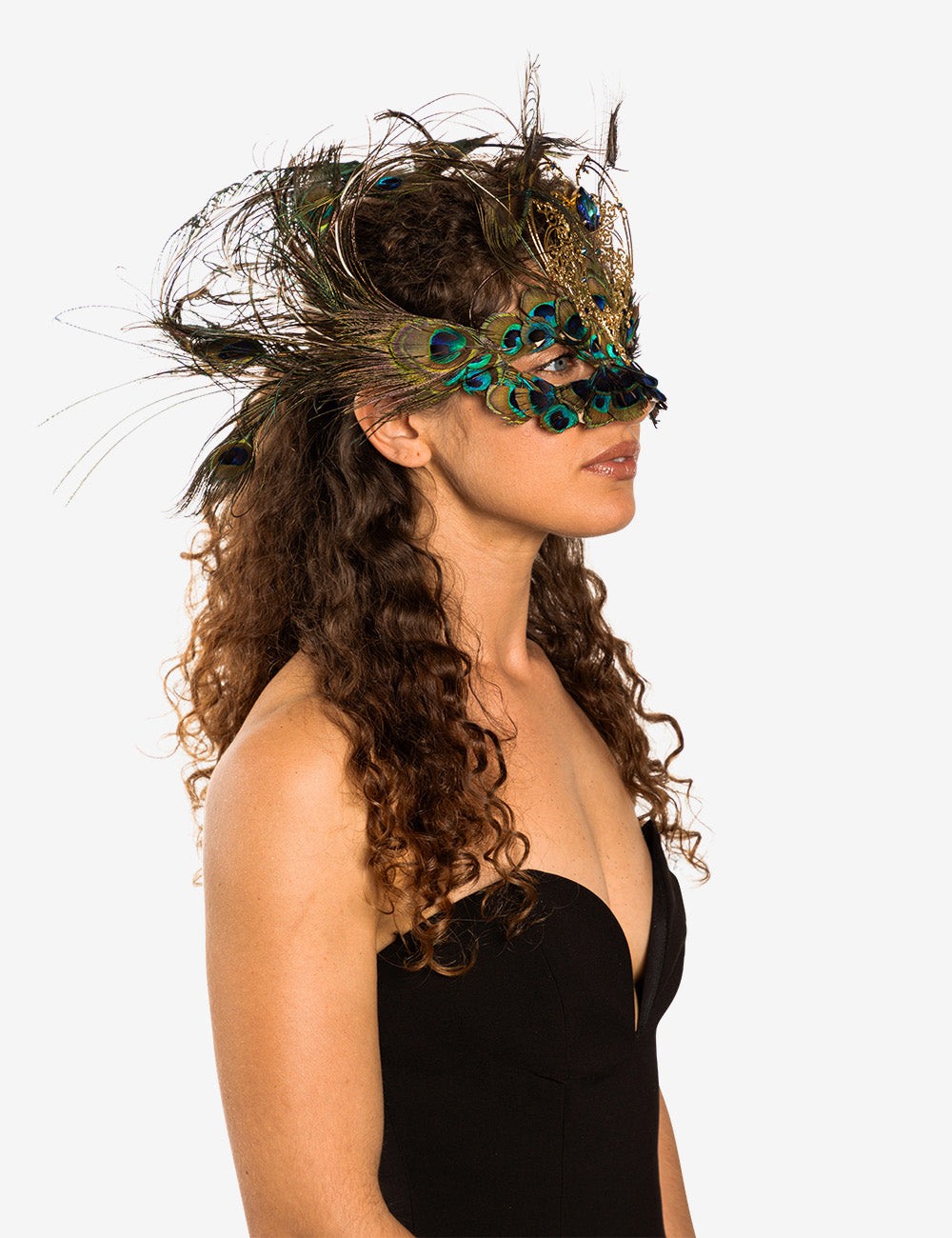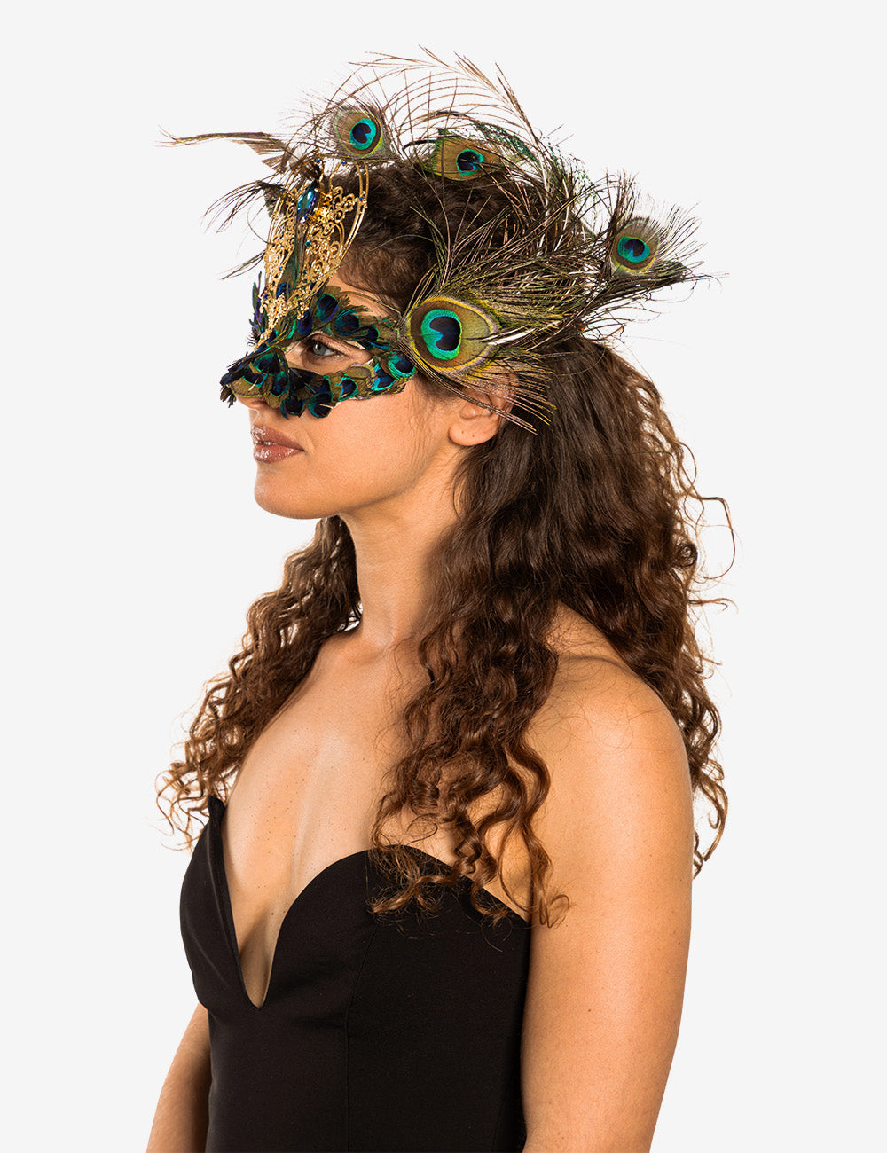 Pavoncella: maschera veneziana in cartapesta realizzata a mano a Venezia dai maestri artigiani.