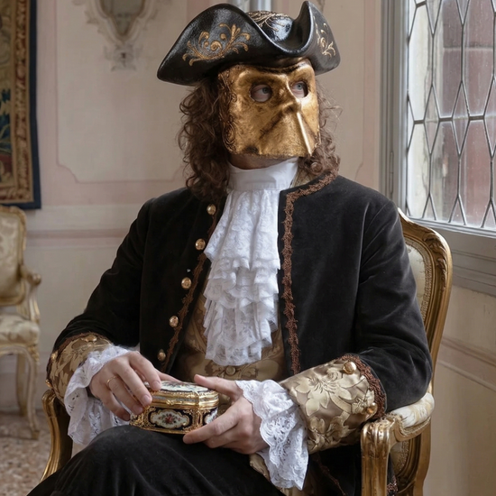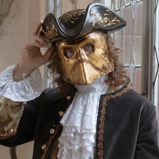 We offer a curated selection of Venetian masks, tailor-made historical costumes, hats, accessories, porcelain dolls, Murano glass, bronze and brass artistic foundry works, wooden forcole, and much more.