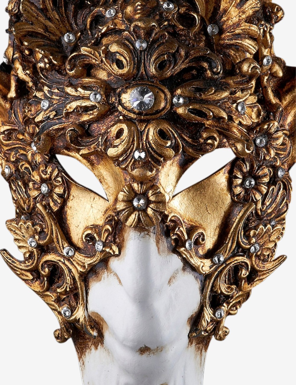 We offer a curated selection of Venetian masks, tailor-made historical costumes, hats, accessories, porcelain dolls, Murano glass, bronze and brass artistic foundry works, wooden forcole, and much more.