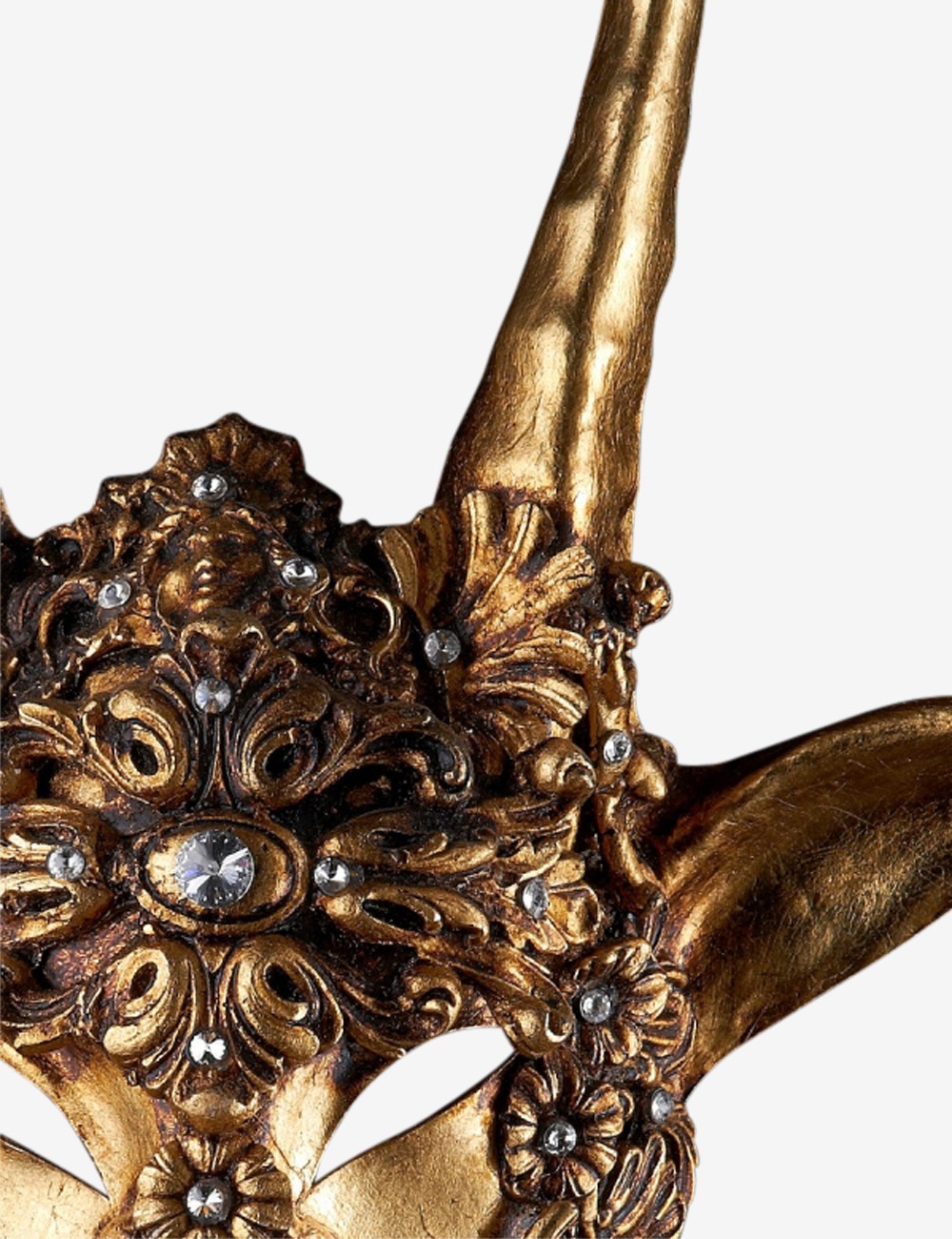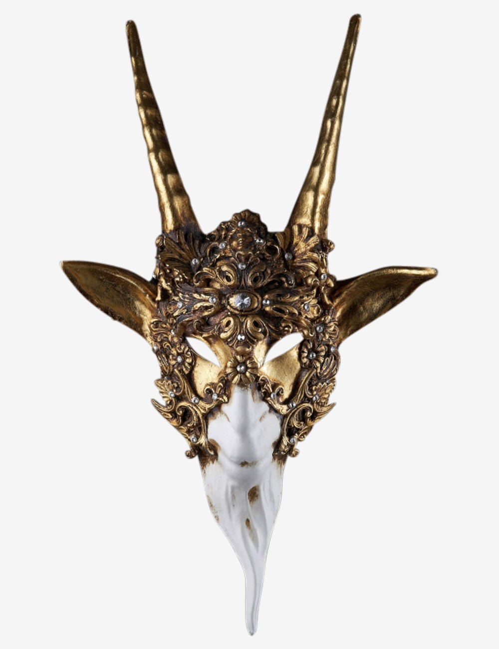 Capricornus authentic venetian mask in paper mache with a unique baroque style. This item is strictly handcrafted in Venice, Italy by the famous artists of the city according to the carnival tradition. Each item comes with certificate of authenticity.