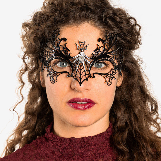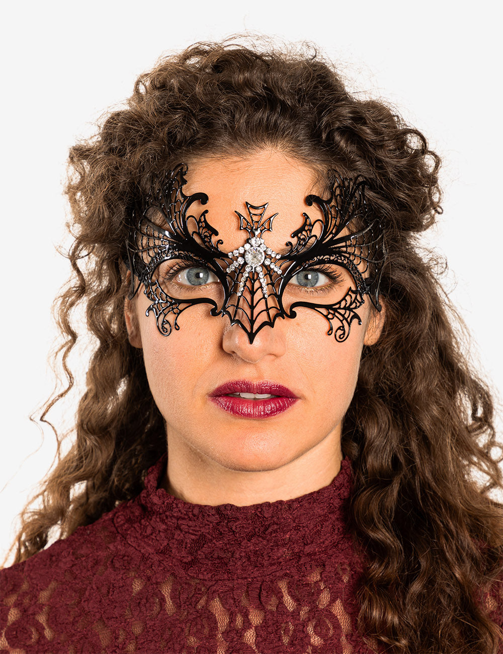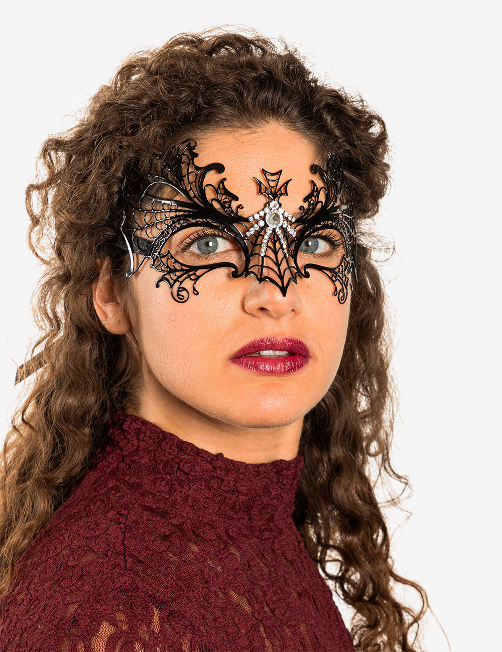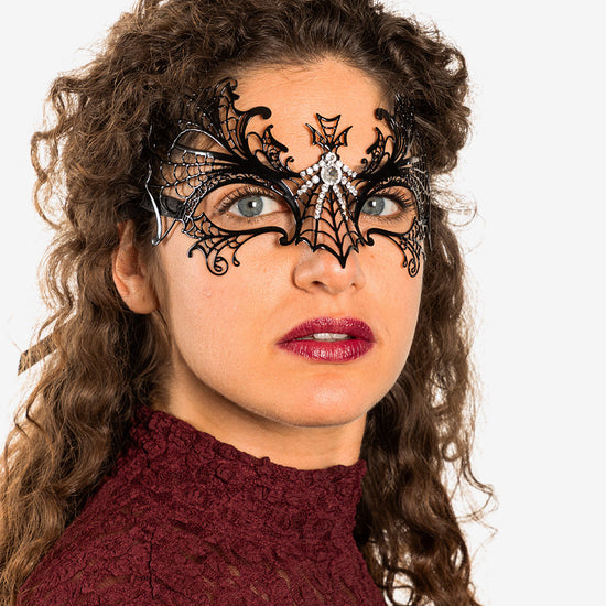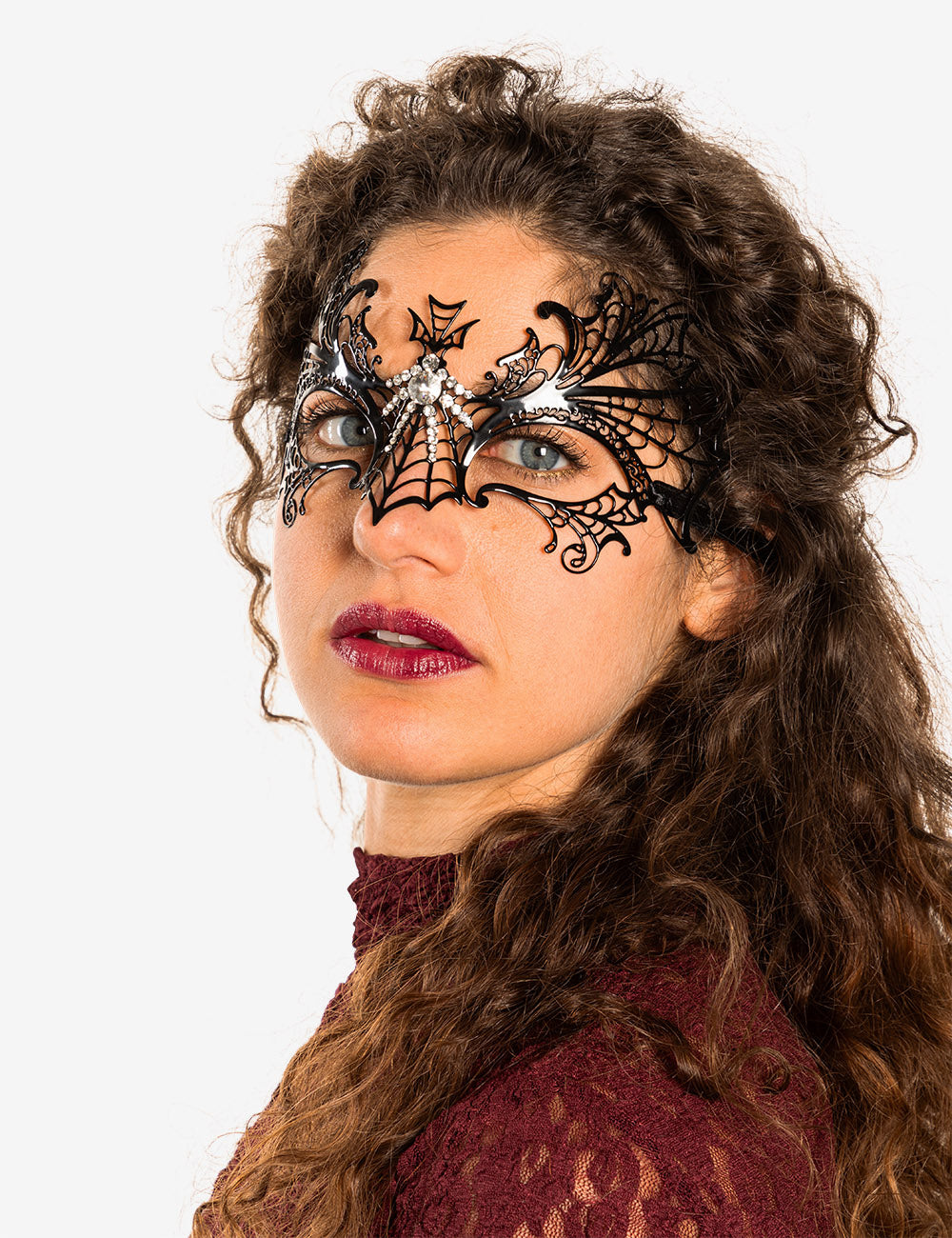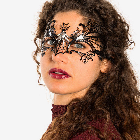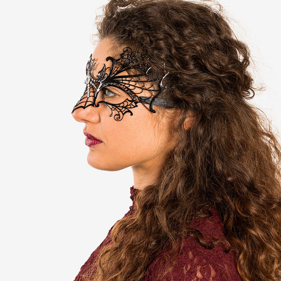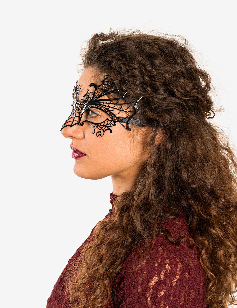 Circe masque vénitien authentique en métal filigrané, cristaux certifiés de haute qualité et équipés de fins rubans de satin sur chaque cotés, prêt pur être portés.