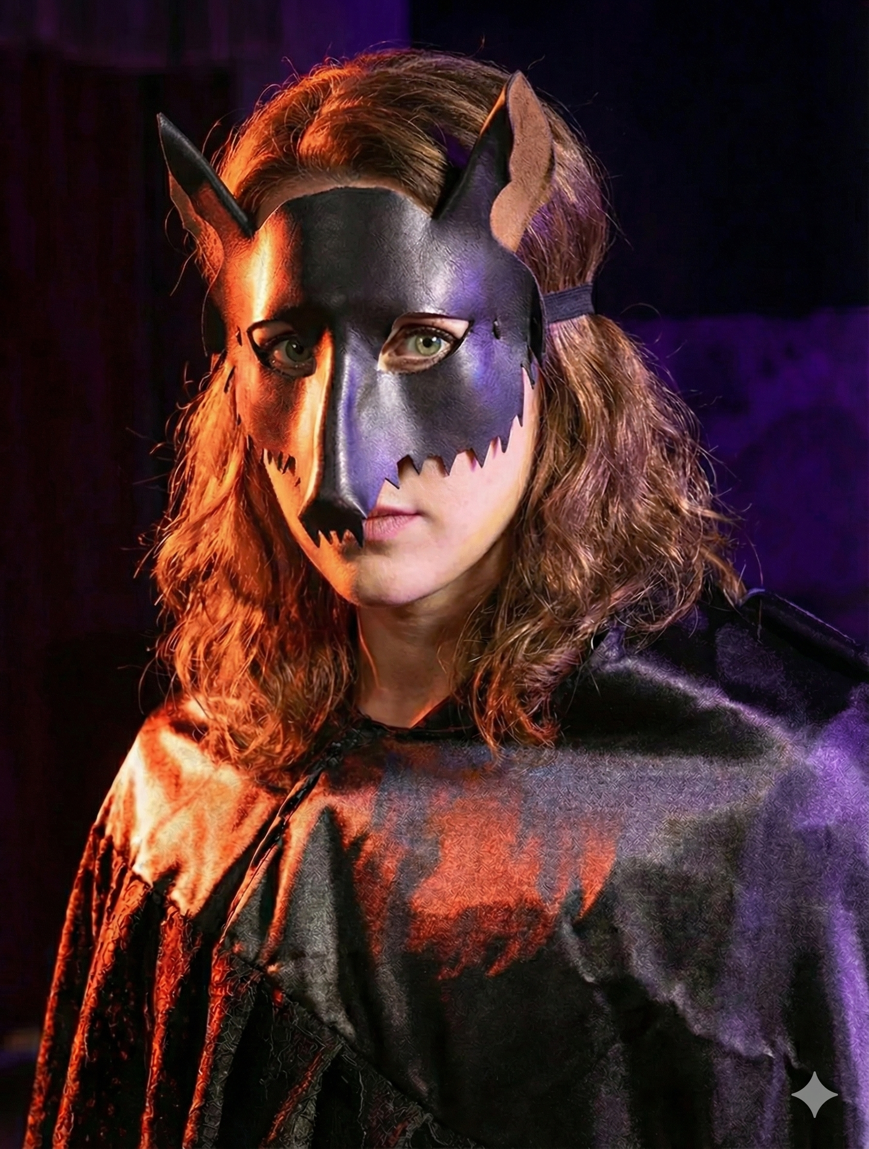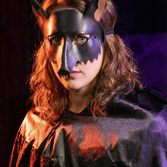 Loup-garou en cuir : masque en cuir peint, fabriqué à la main dans nos ateliers en Italie. Équipé d'un lacet élastique réglable pour le port Fabriqué et décoré entièrement à la main, il conserve une élasticité qui garantit une excellente tenue dans le temps, adaptée à des performances telles que le théâtre et l'interprétation.