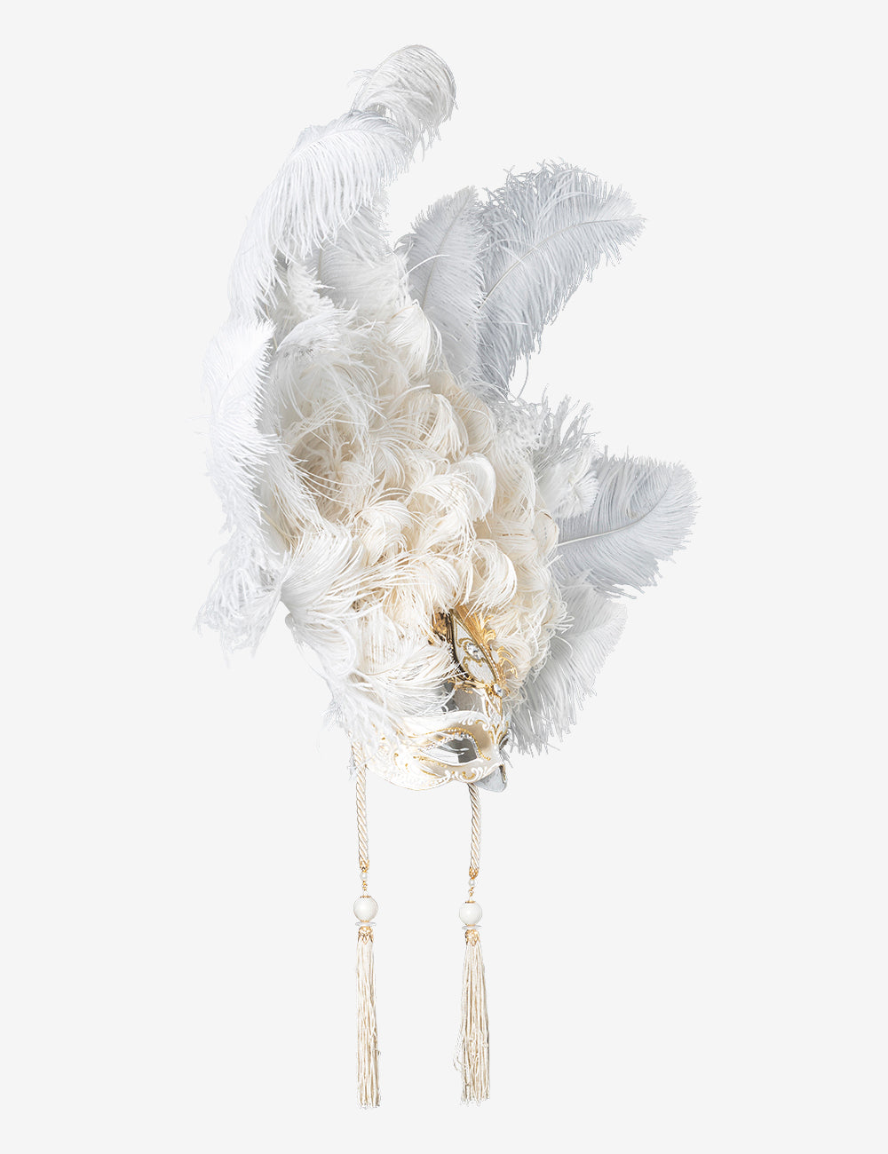 Nous proposons une sélection soignée de masques vénitiens, costumes historiques sur mesure, chapeaux, accessoires, poupées en porcelaine, verreries de Murano, œuvres d’art en bronze et laiton, forcole en bois et bien plus encore.
