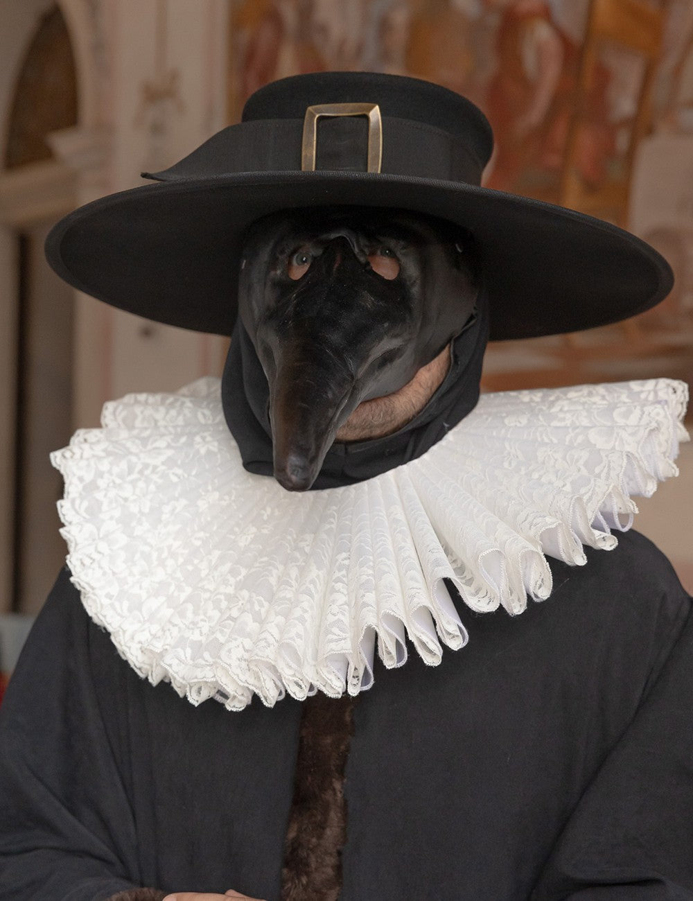 Medico della Peste Nero Maschera in pelle artigianale con lacci per essere indossata realizzata nei nostri laboratori in Italia. Lavorata e decorata a mano mantiene una elasticità che garantisce ottima vestibilità a lunga durata adatta a performance come ad esempio il teatro, recitazione, teatro, ecc…