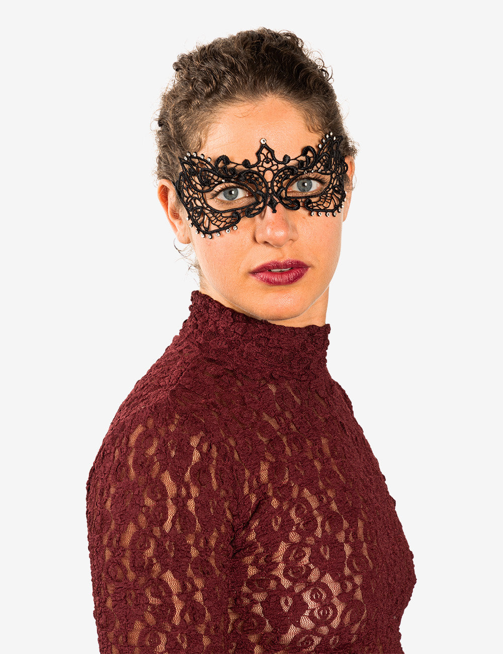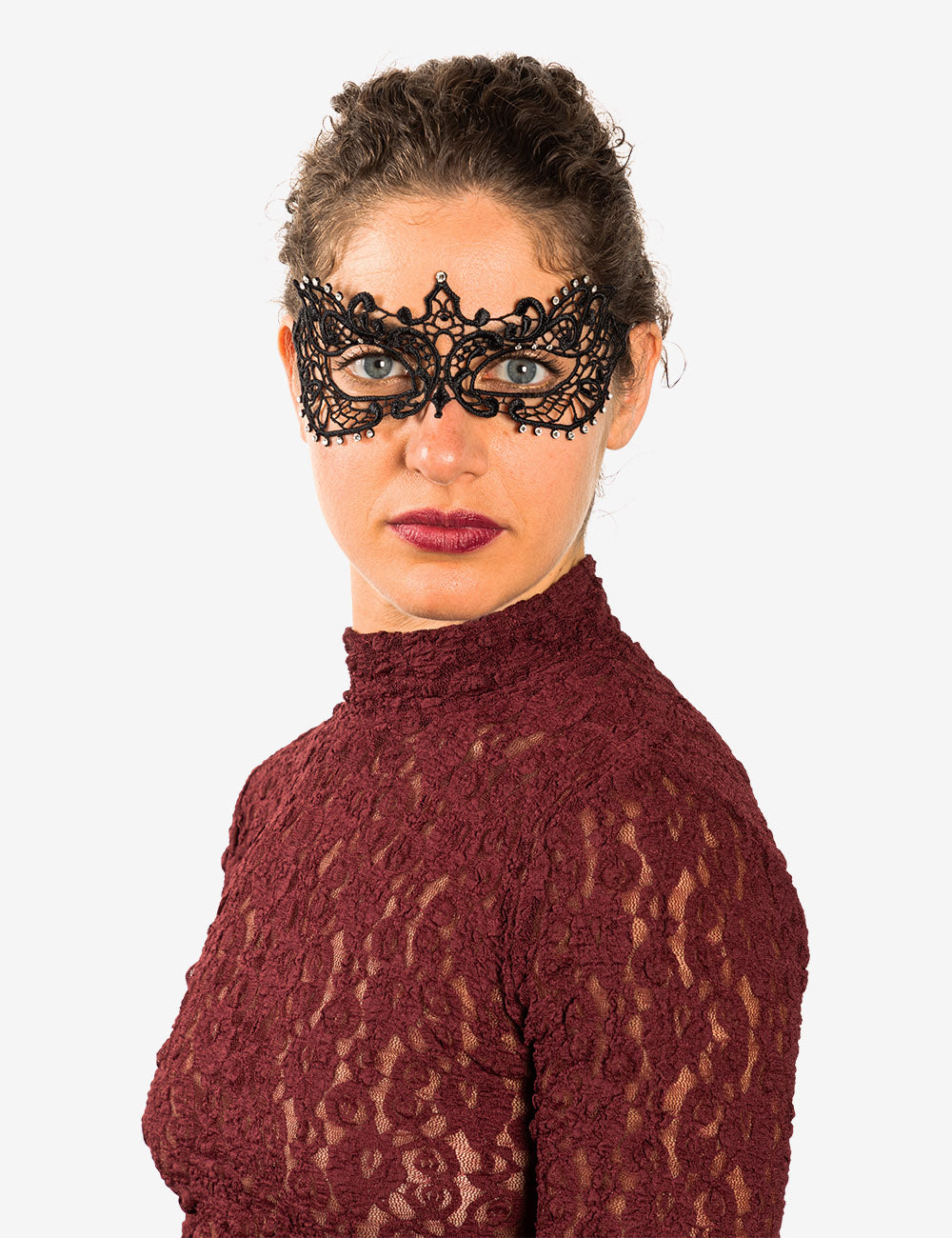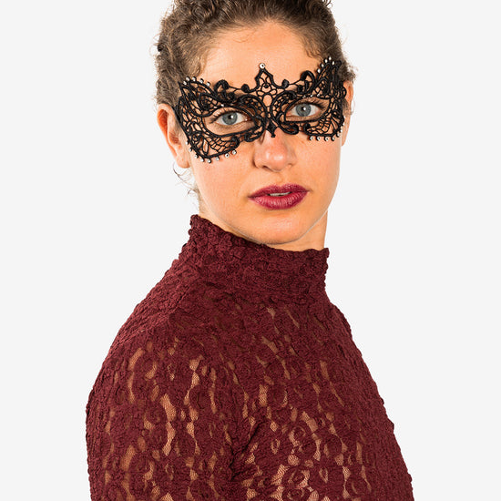Anastasia con strass maschera veneziana in macramé realizzata a mano a venezia dai maestri artigiani.
