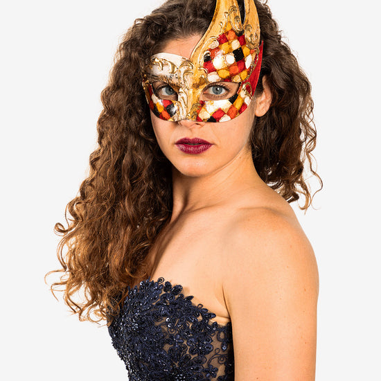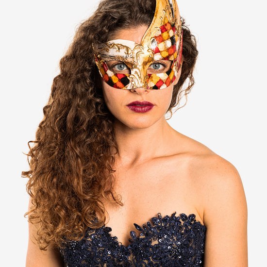 Lavorata e decorata a mano secondo la tradizione secolare del carnevale veneziano. Un prodotto tipico, originale e autentico di Venezia.