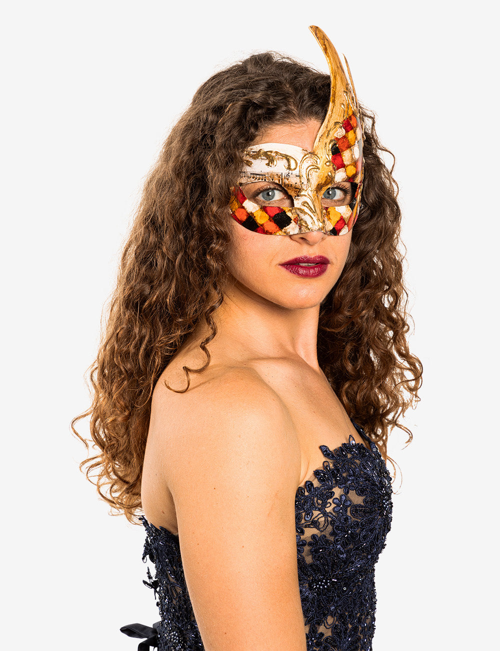 Offriamo una selezione curata di maschere veneziane, costumi storici sartoriali, cappelli, accessori, bambole in porcellana, vetri di Murano, opere di fonderia artistica in bronzo e ottone, forcole in legno e molto altro.