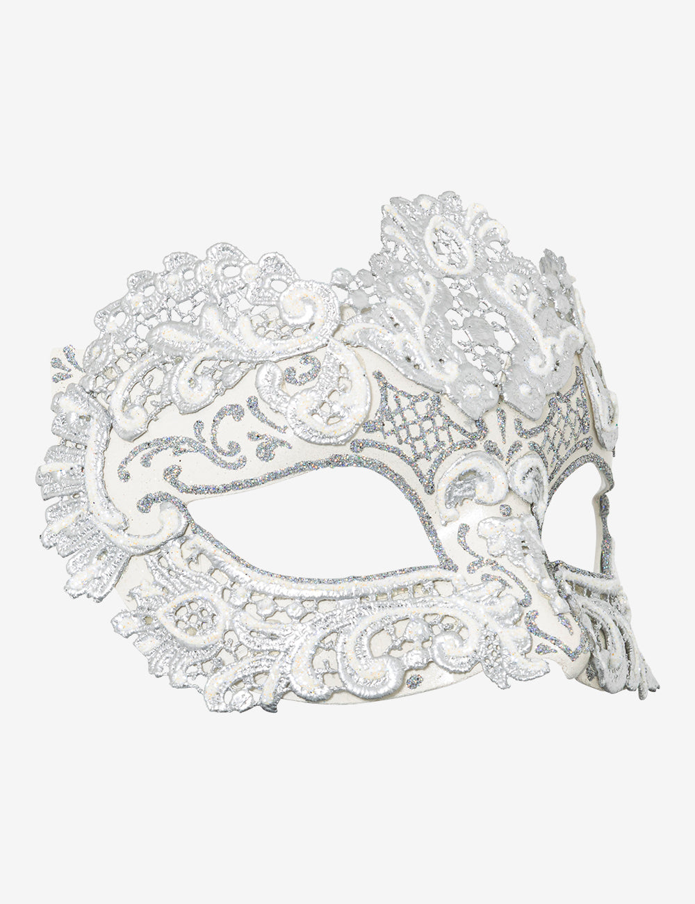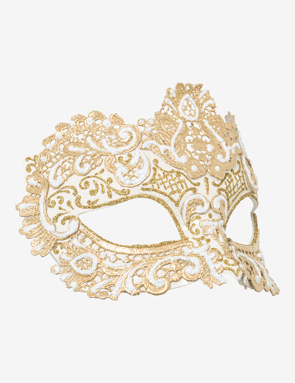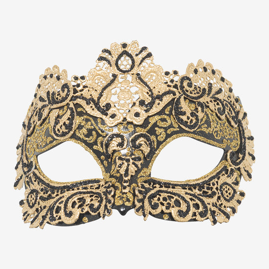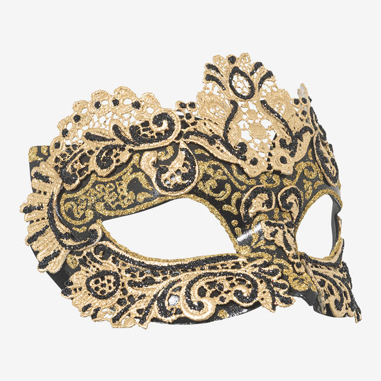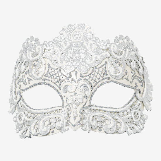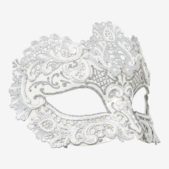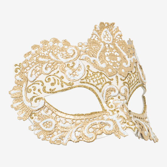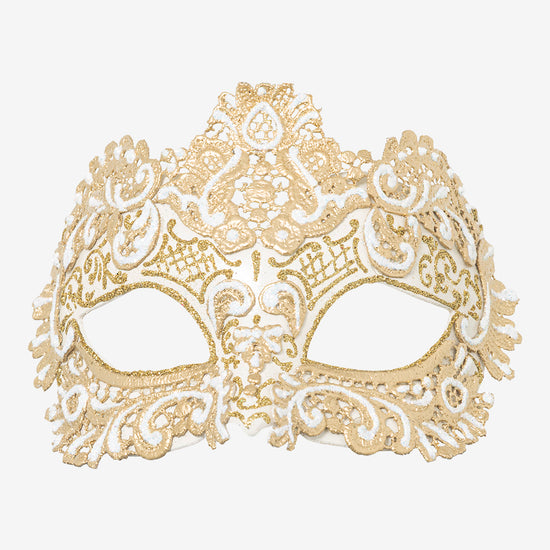 Ordito: maschera veneziana in cartapesta realizzata a mano a Venezia dai maestri artigiani.